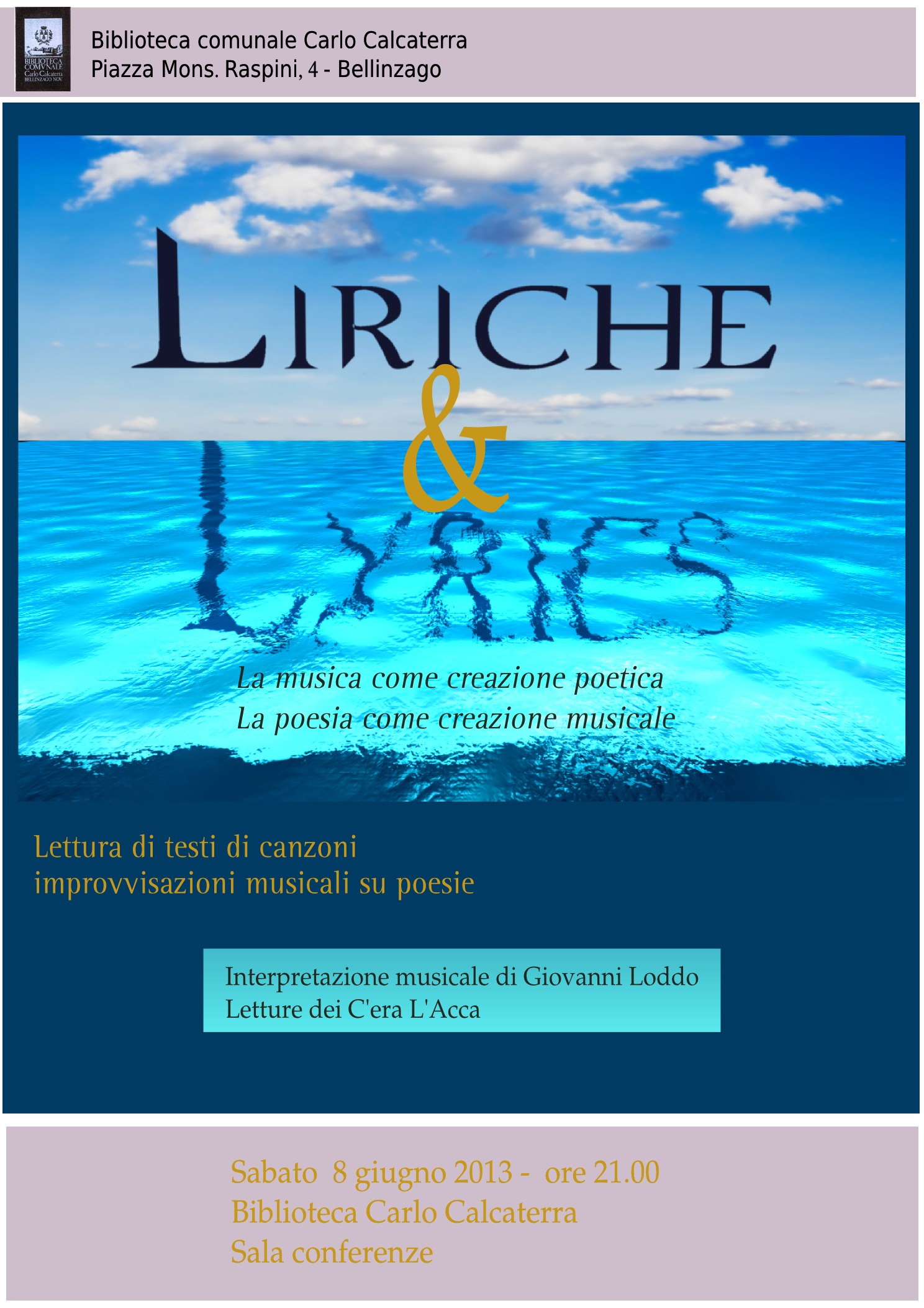 Serata con lettura di testi di canzoni e improvvisazioni musicali su testi di poesie. Interpretazioni musicali di Giovanni Loddo e lettura a cura dell'Ass. Culturale C'era L'Acca.