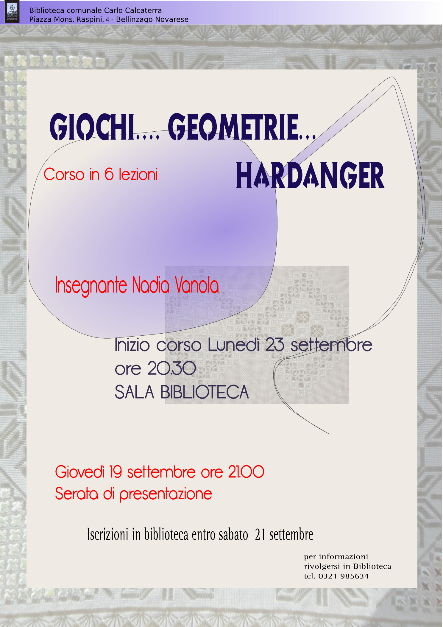 "Corso di ricamo: GIOCHI, GEOMETRIE, HARDANGER "