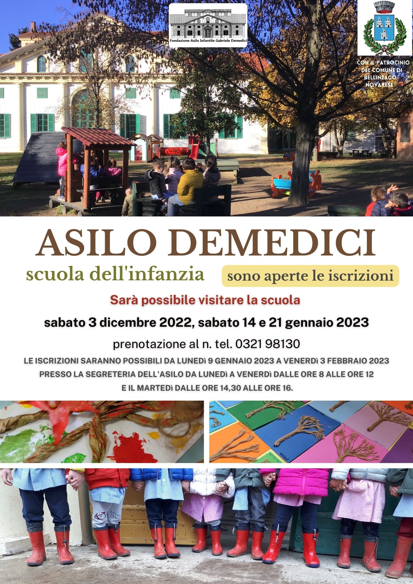 Informiamo che in occasione delle iscrizioni alla scuola dell'infanzia"Asilo infantile Demedici"previste dal 09/01/2023 al 03/02/2023, sarà possibile visitare la scuola durante gli open day che si terranno nelle giornate del 3 dicembre 2022, 14 e 21 gennaio 2023.
