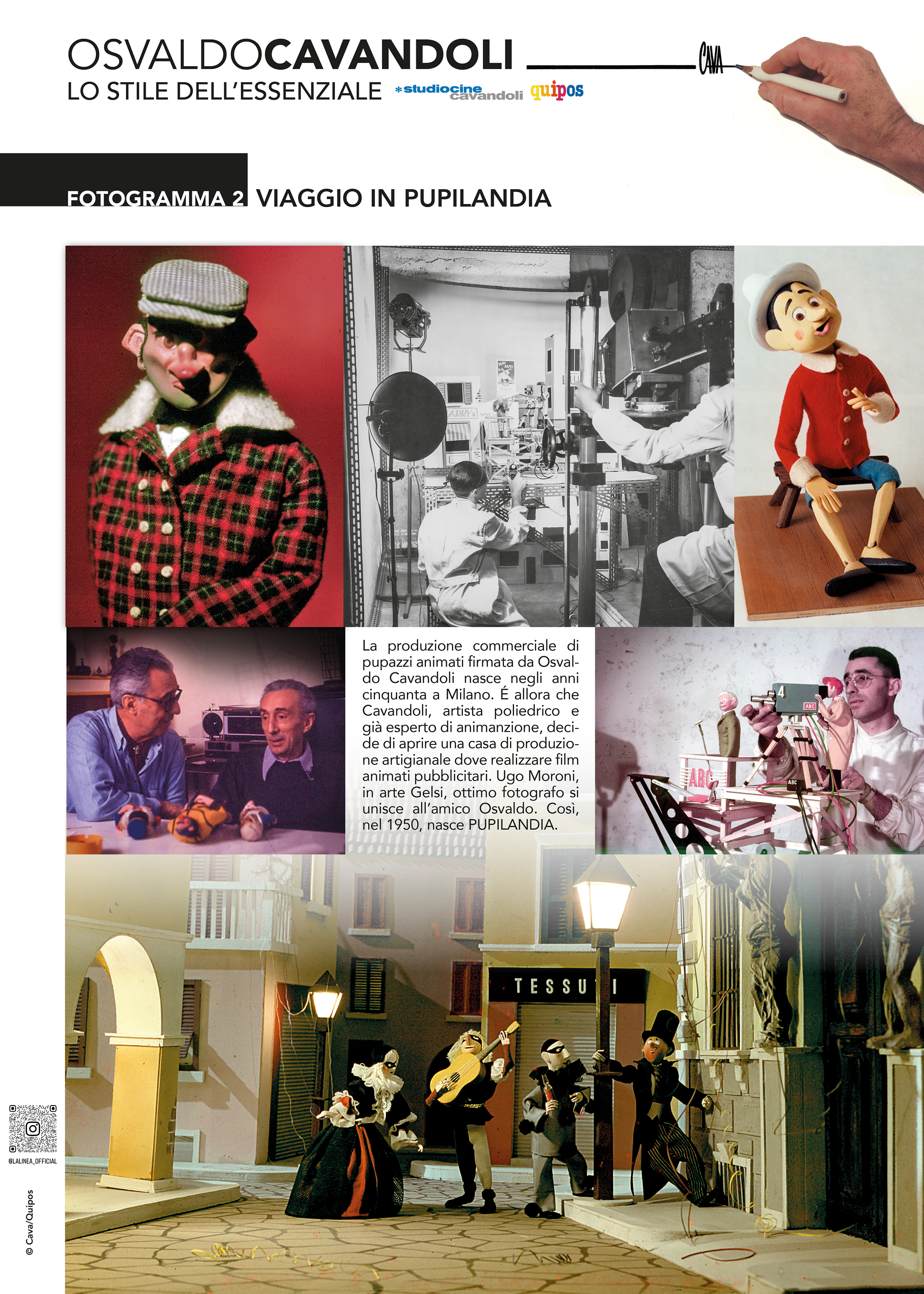 “Osvaldo Cavandoli – Lo stile dell’essenziale” è infatti, allo stesso tempo, omaggio e retrospettiva dedicata alla figura di Osvaldo Cavandoli e alla sua innovativa arte illustrativa, di comunicazione pubblicitaria. Cavandoli è pioniere riconosciuto in tutto il mondo nell’ambito dell’animazione italiana in stop motion e disegnata.