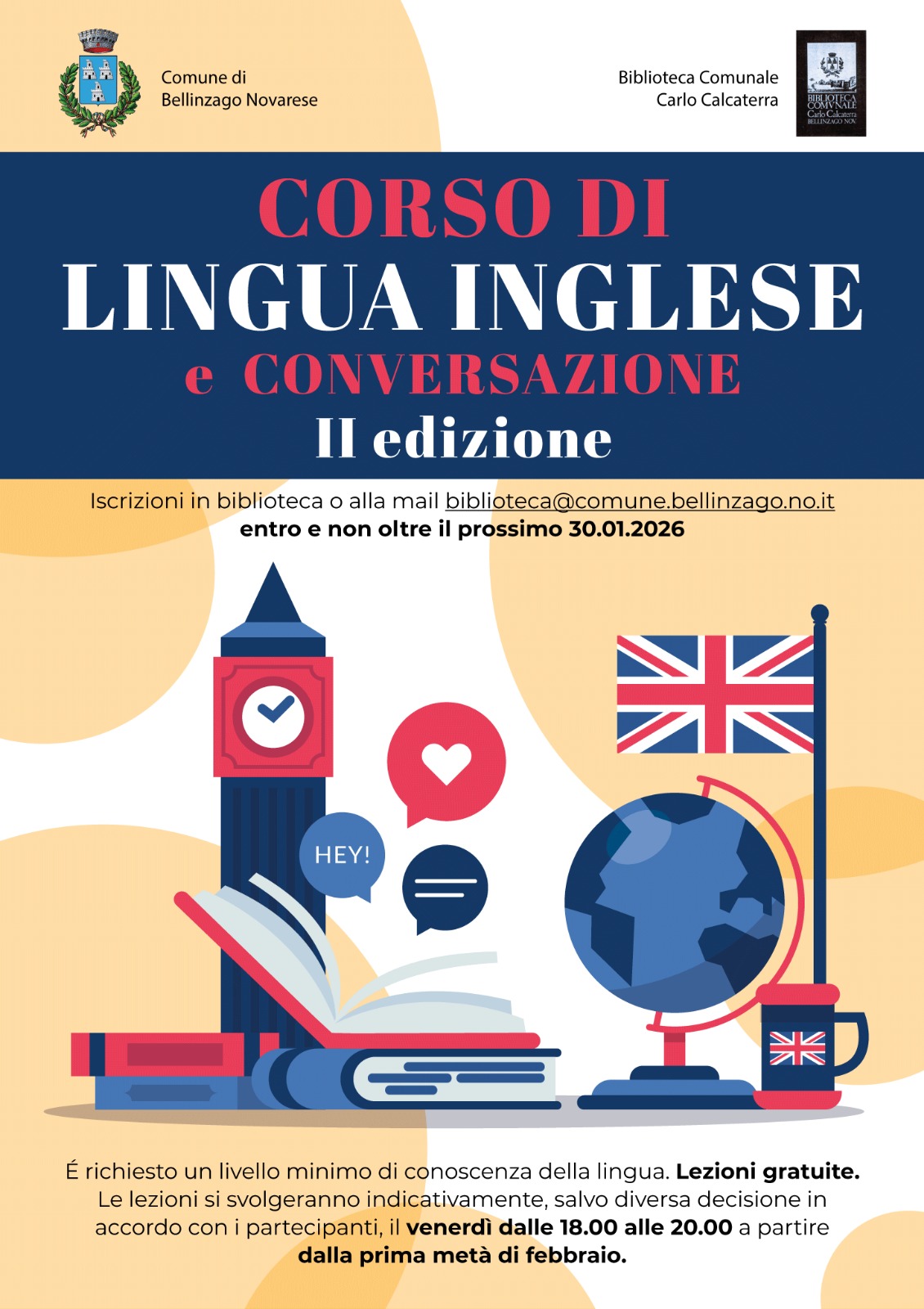 Per le iscrizioni, da comunicare entro il 30/01/2026, è necessario rivolgersi alla Biblioteca (0321/985634 - biblioteca@comune.bellinzago.no.it).