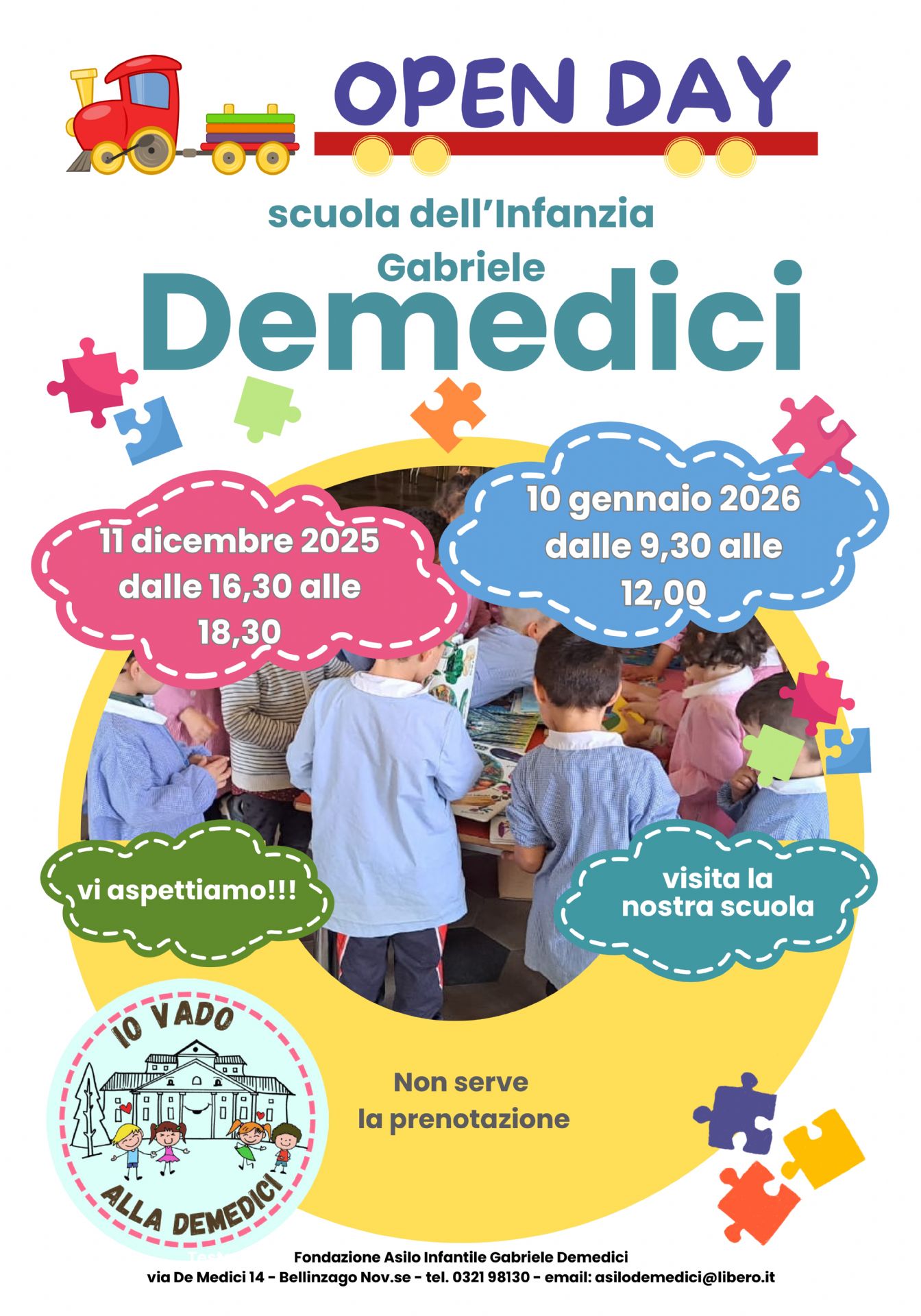 La Scuola dell'Infanzia Gabriele Demedici organizza due giornate di open day aperte ai genitori interessati.