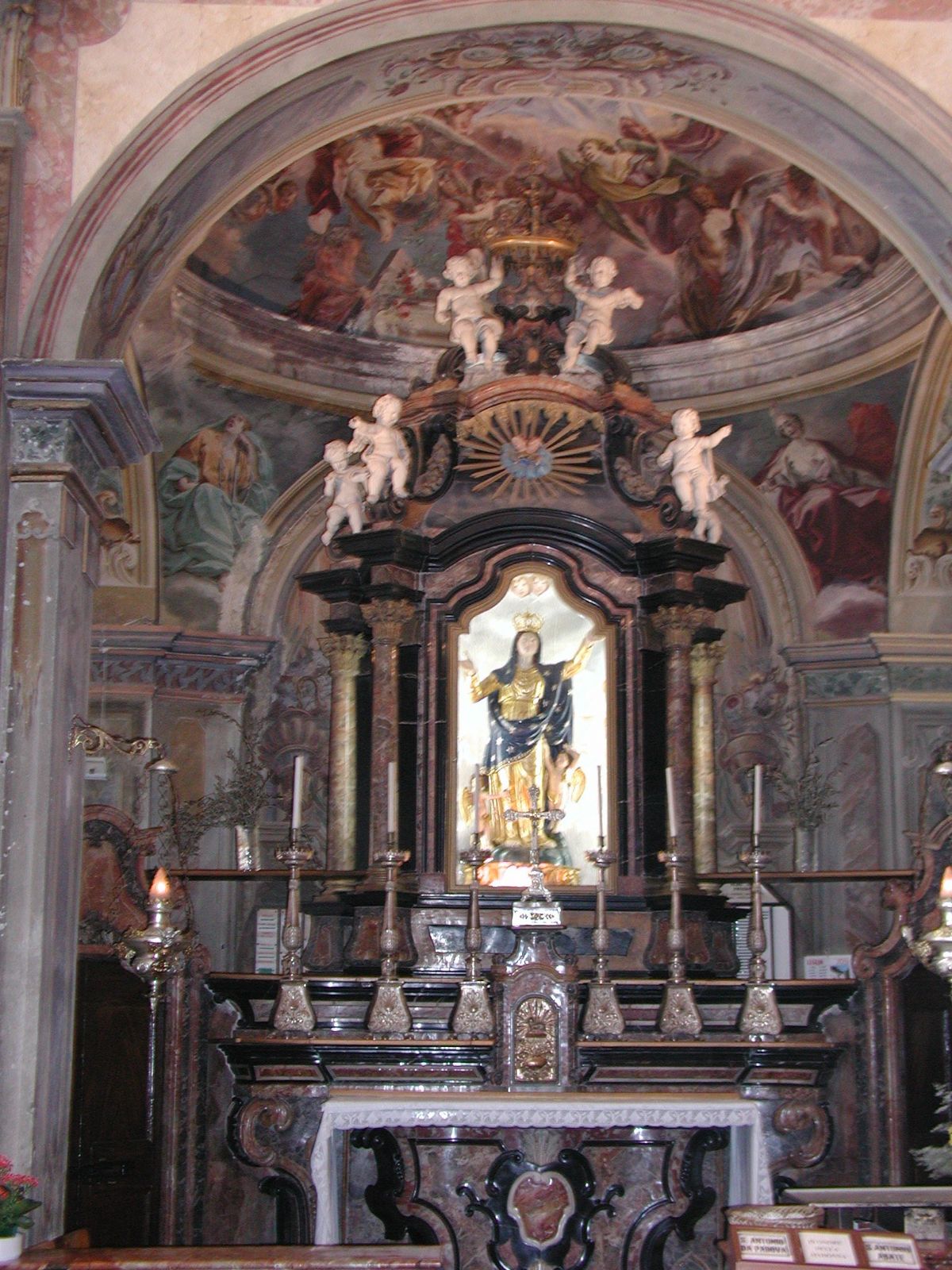 La cappella dell'Assunta è arricchita da una statua della Madonna del 1825. L'altare tutto di marmo, nel 1758 è detto "fatto nuovo". Fiancheggiano la cappella le statue di Sant'Antonio Abate e di Sant'Antonio da Padova.