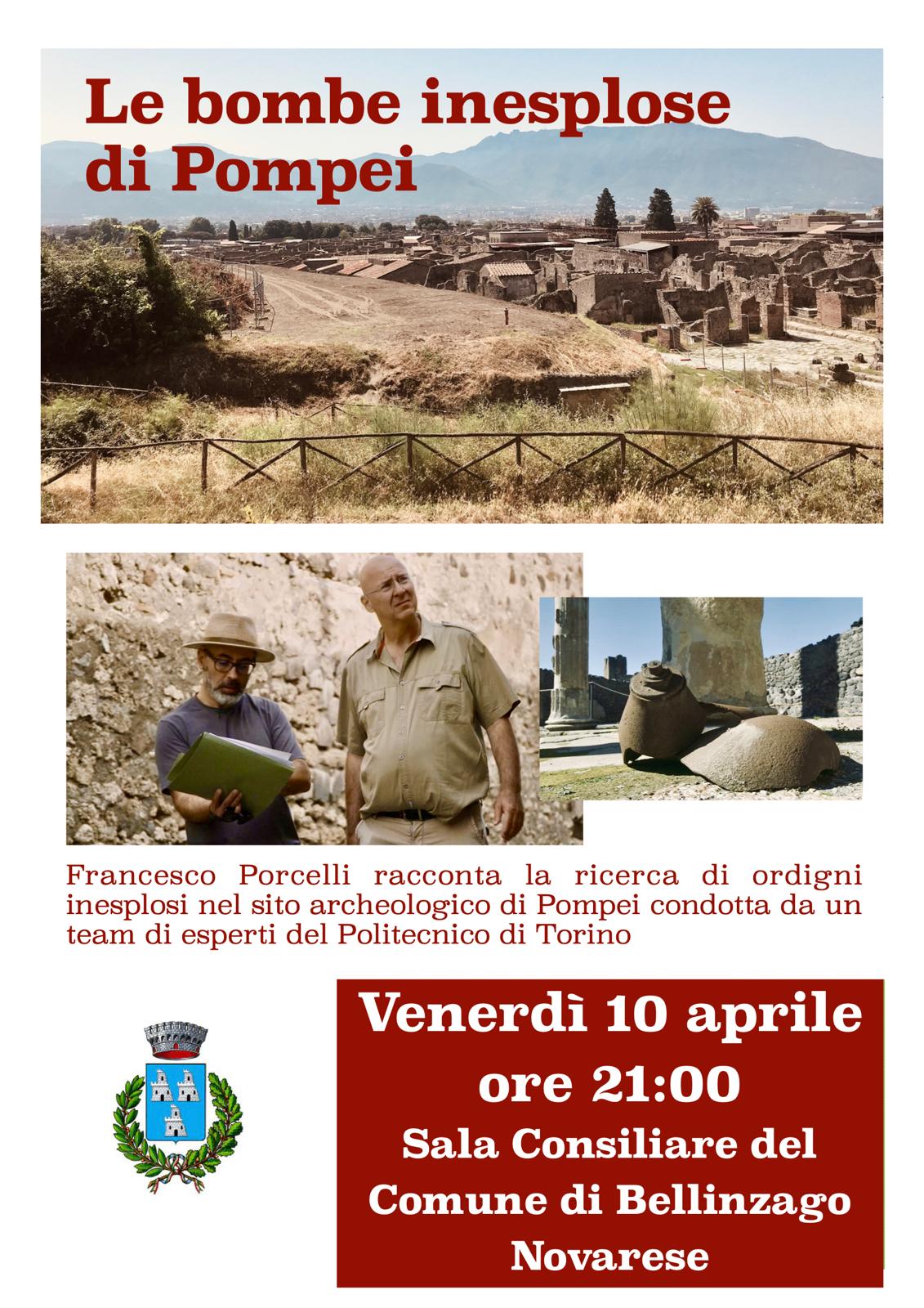 Venerdì 10 aprile alle ore 21.00 presso la Sala consiliare del Comune di Bellinzago N.se il prof. Francesco Porcelli racconta la ricerca di ordigni inesplosi nel sito archeologico di Pompei condotta da un team di esperti del Politecnico di Torino.