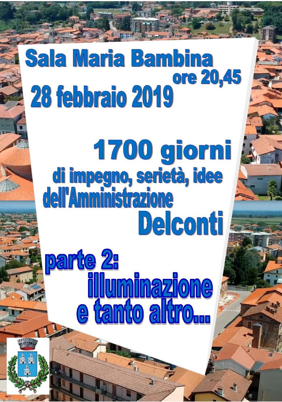 GIOVEDI' 28 FEBBRAIO ALLE ORE 20.45, PRESSO LA SALA MARIA BAMBINA, SI TERRA' IL SECONDO INCONTRO CON LA POPOLAZIONE PER ILLUSTRARE 1.700 GIORNI DI IMPEGNO, SERIETA' E IDEE DELL'AMMINISTRAZIONE DELCONTI: ILLUMINAZIONE E TANTO ALTRO .....