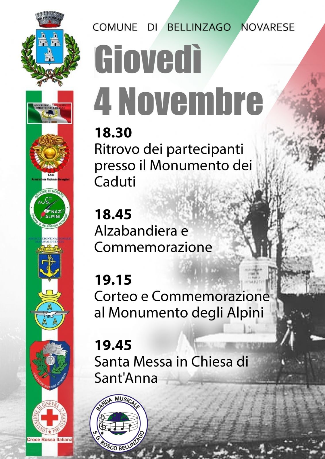 In occasione della Ricorrenza del 4 NOVEMBRE - Giornata dell'Unità Nazionale e delle Forze Armate l'Amministrazione Comunale, in collaborazione con il Comitato Tricolore e le Associazioni Combattentistiche e d'Arma del territorio, è lieta di invitare la cittadinanza alla solenne celebrazione che si svolgerà il giorno giovedì 4 novembre, con ritrovo alle ore 18.30 presso il Monumento dei Caduti di Via Libertà.