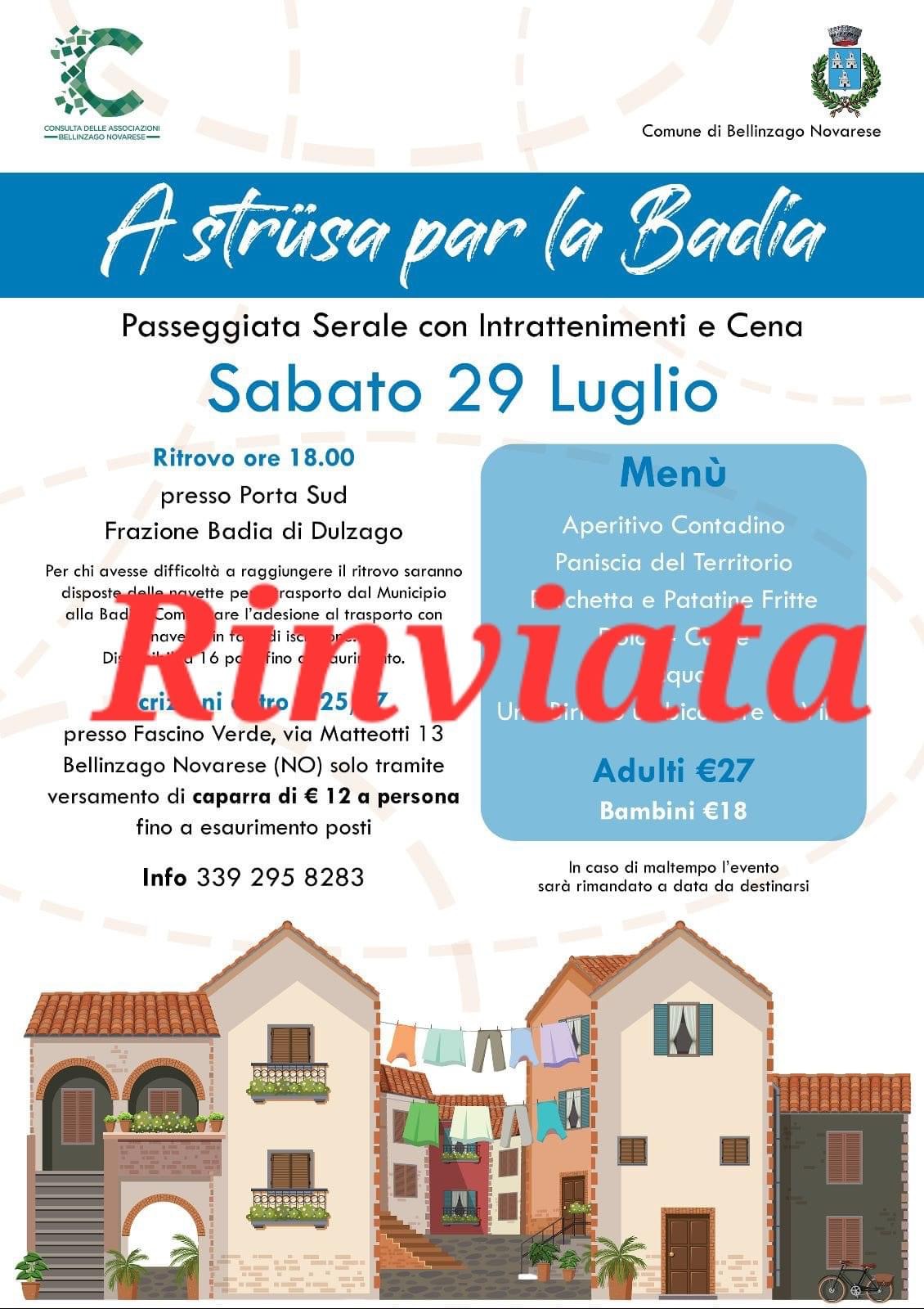 La passeggiata serale con intrattenimenti e cena, organizzata dalla Consulta delle Associazioni in collaborazione col Comune di Bellinzago, è prevista per il 29 luglio, con ritrovo alle ore 18.
