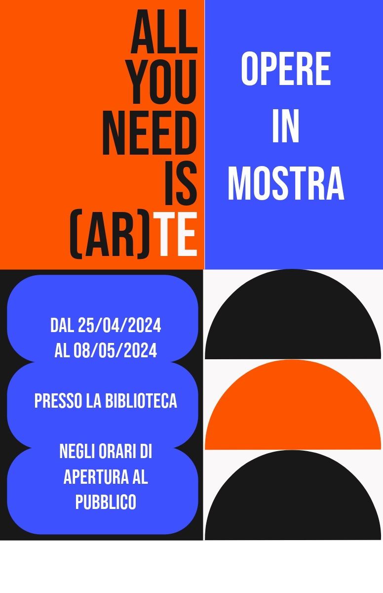 Segnaliamo che le opere di Nathali Vicidomini e di tutti i ragazzi che hanno partecipato all'esperienza creativa All you need is ar.te saranno ancora visibili in Biblioteca fino al giorno 8 maggio 2024!