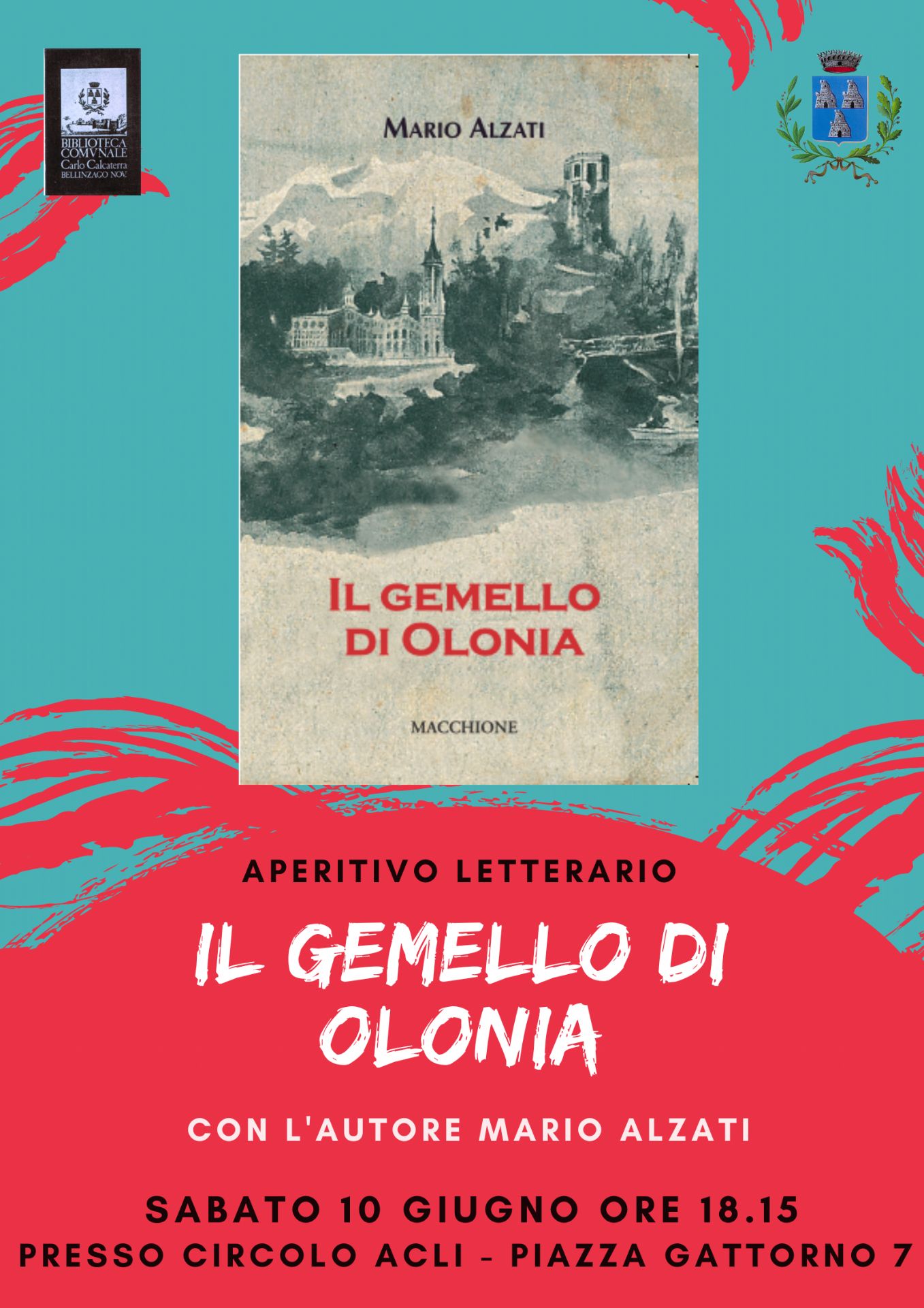 Sabato 10 giugno alle ore 18.15 sarà ospite presso il Circolo Alci di Bellinzago lo scrittore Mario Alzati presentando la sua opera Il gemello di Olonia, per un conviviale aperitivo letterario.