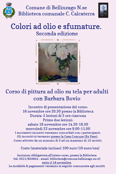 Iscrizioni obbligatorie all'intero corso, presso la Biblioteca (telefono 0321/985634 - email biblioteca@comune.bellinzago.no.it) entro il 16 novembre.