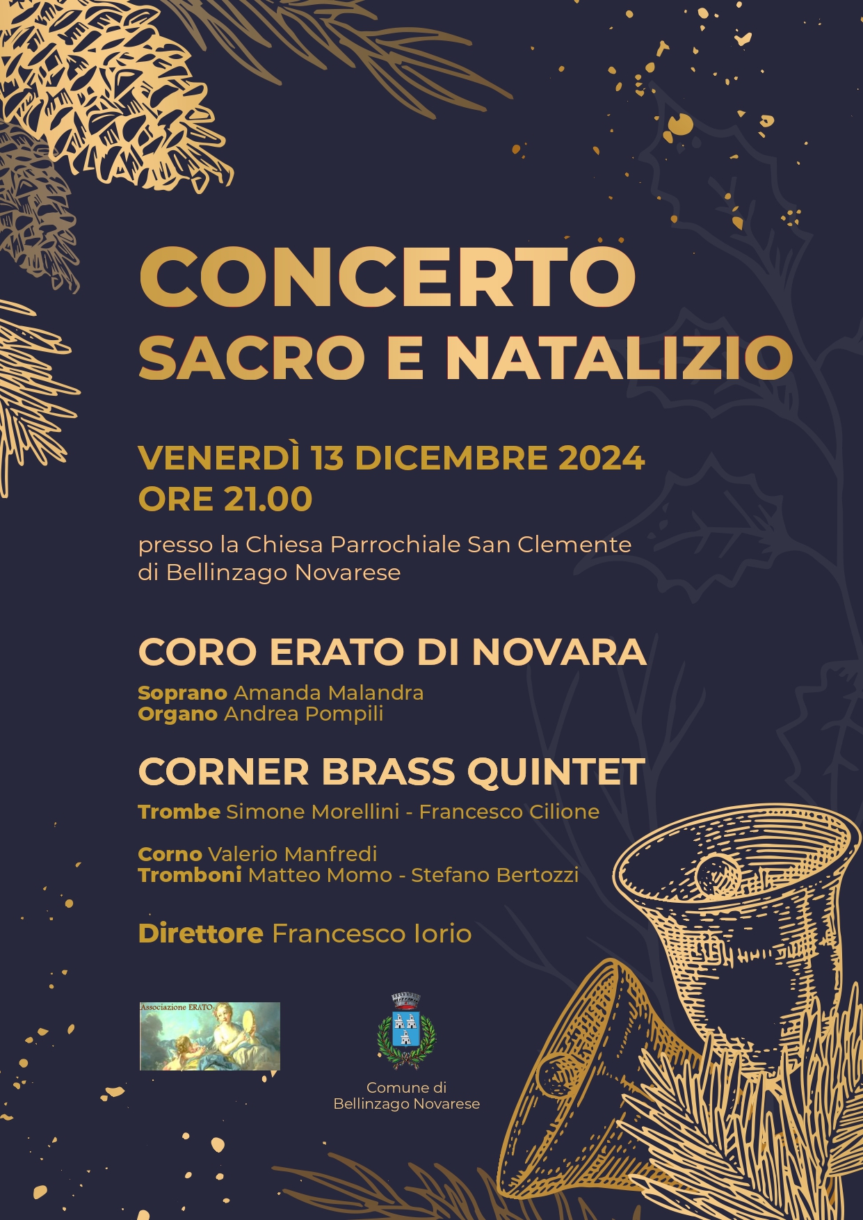 L'Amministrazione Comunale propone in vista delle festività natalizie un concerto di musica sacra e natalizia con il Coro Erato di Novara e il Cornet Brass Quintet.