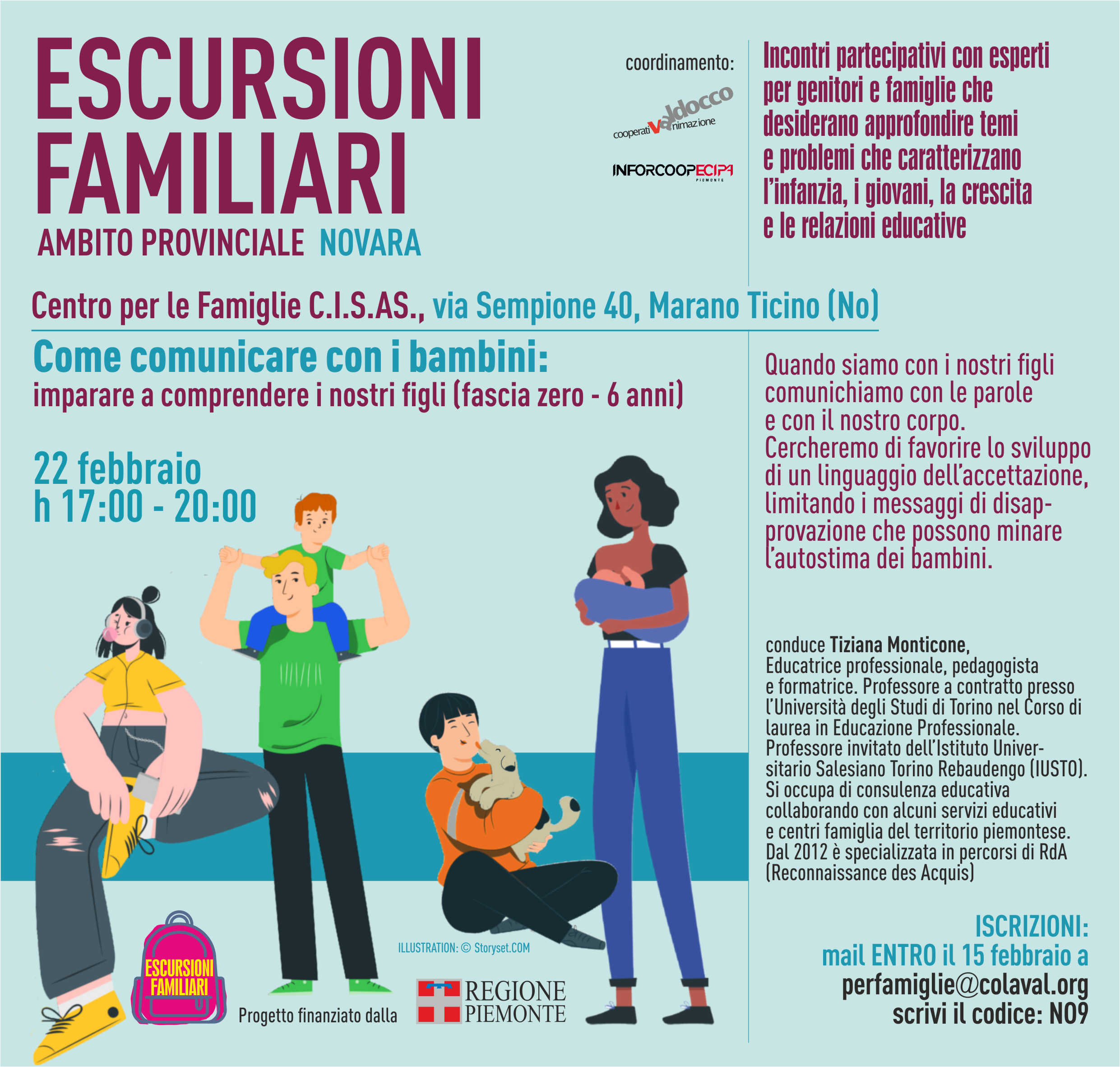 La partecipazione è gratuita e su iscrizione da trasmettere entro il 15 febbraio all'indirizzo perfamiglie@colaval.org (inserendo il codice NO9).