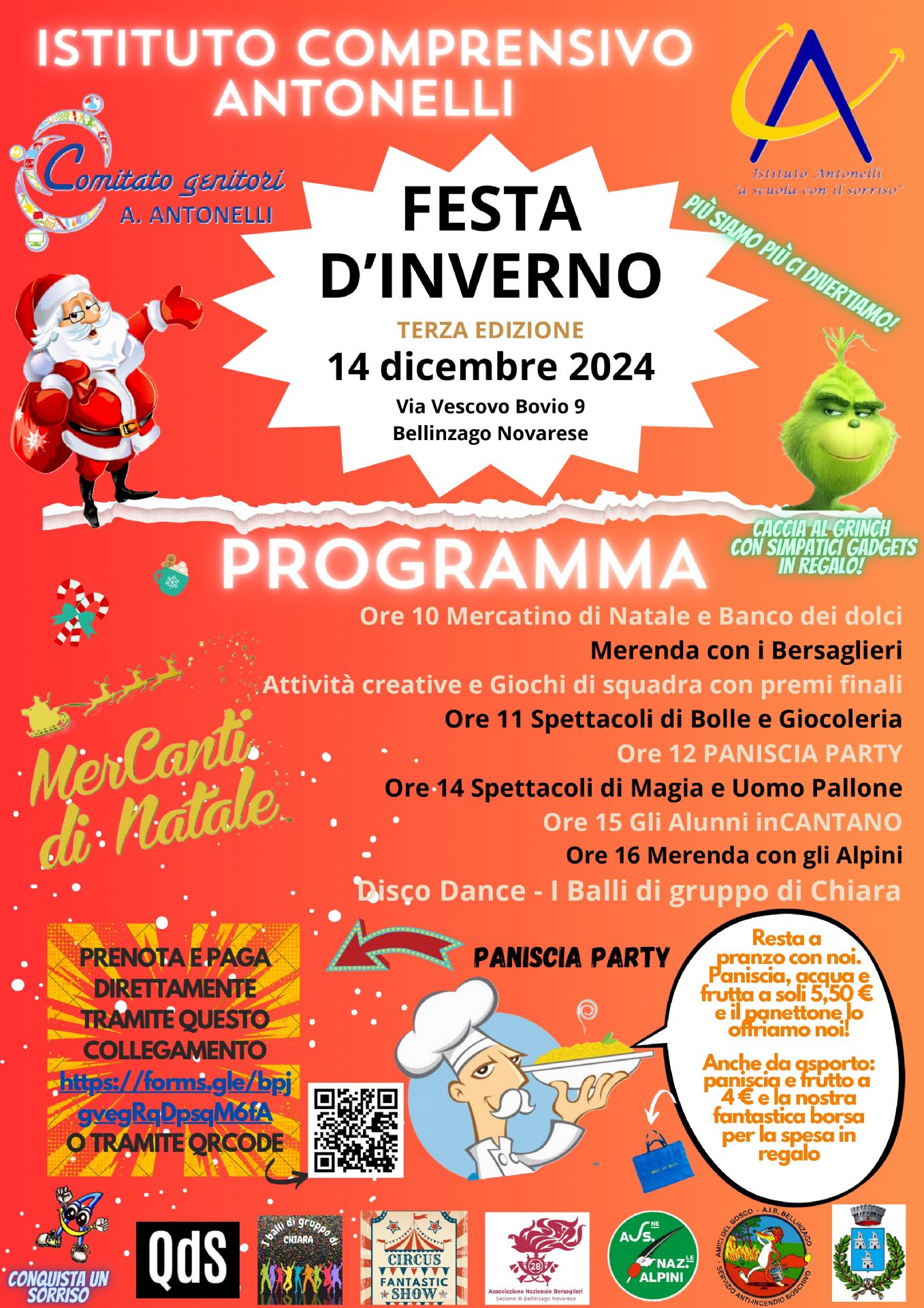 L'Istituto Comprensivo Antonelli di Bellinzago insieme al Comitato Genitori e a diverse associazioni propongono per sabato 14 dicembre 2024 la FESTA D'INVERNO 2024 - TERZA EDIZIONE.