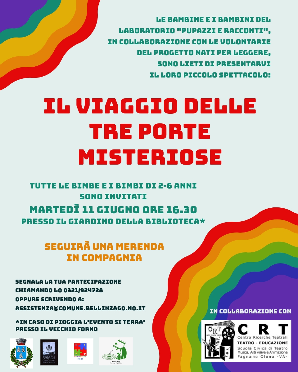 Il laboratorio Pupazzi e Racconti proposto nell'ambito del Progetto Si Energie Plus e curato dal CRT “Teatro-Educazione” Centro Ricerche Teatrali - Scuola Civica di Teatro, Musica, Arti Visive e Animazione è giunto a conclusione e le bambine e i bambini sono pronti a presentarvi il loro piccolo spettacolo martedì 11 giugno alle ore 16.30 presso il giardino della Biblioteca (in caso di pioggia l'evento si svolgerà invece presso il Vecchio Forno)!
