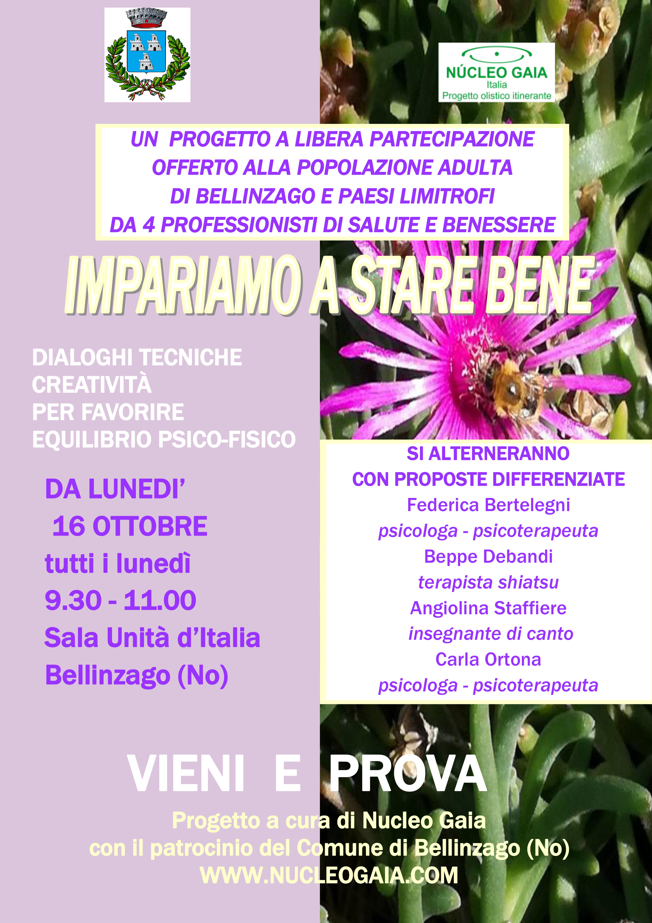 Il gruppo del lunedì, attivo a Bellinzago dal 2013, si rinnova con un nuovo progetto. IMPARIAMO A STARE BENE: