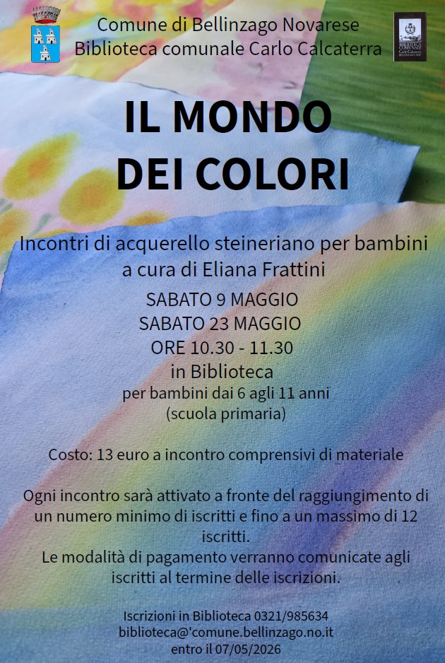 La Biblioteca comunale C. Calcaterra, in collaborazione con Eliana Frattini, propone, dopo l'interesse raccolto dalle precedenti esperienze, due incontri per praticare la pittura ad acquerello steineriano rivolti a bambini dai 6 agli 11 anni.