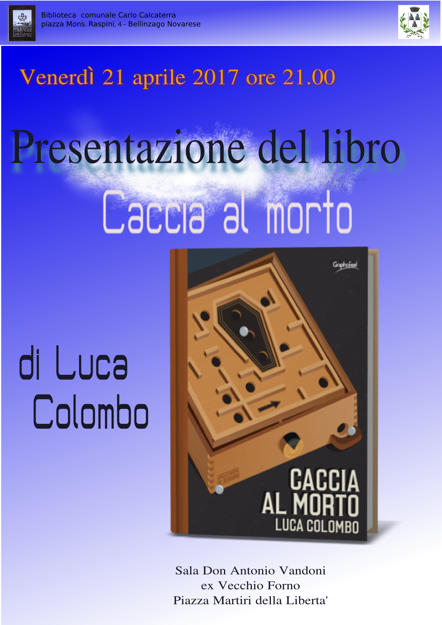 La biblioteca comunale ha organizzato per Venerdì 21 aprile alle ore 21,00, presso la sala ex forno comunale, un incontro con lo scrittore Luca COLOMBO che presenterà il suo libro "Caccia la morto".