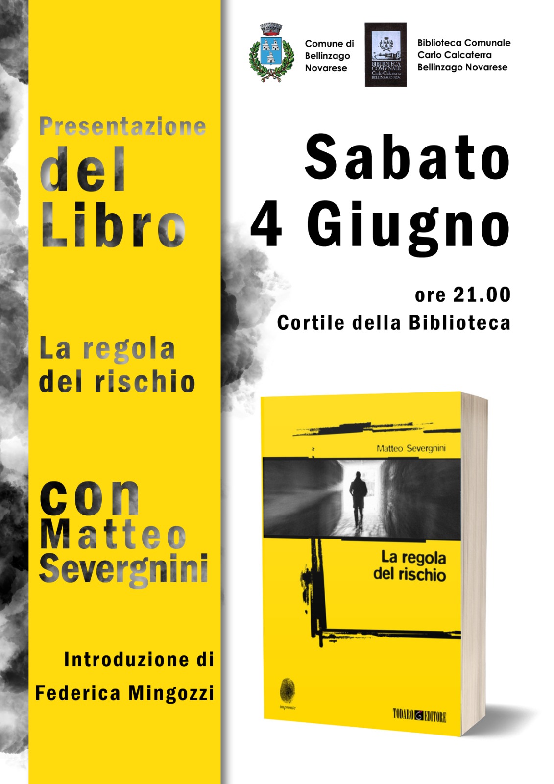 Cominceremo sabato 4 giugno alle ore 21, nella splendida cornice del cortile della nostra biblioteca, dove incontreremo lo scrittore Matteo Severgnini che ci presenterà il suo libro "La regola del rischio".