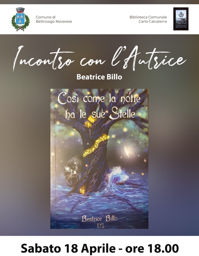 Nell'ambito della rassegna Incontro con l'Autore e l'Autrice, sabato 18 aprile alle ore 18.00 presso la sala ex Vecchio Forno la giovane scrittrice mezzomerichese Beatrice Billo presenterà il suo libro "Così come la notte ha le sue stelle".