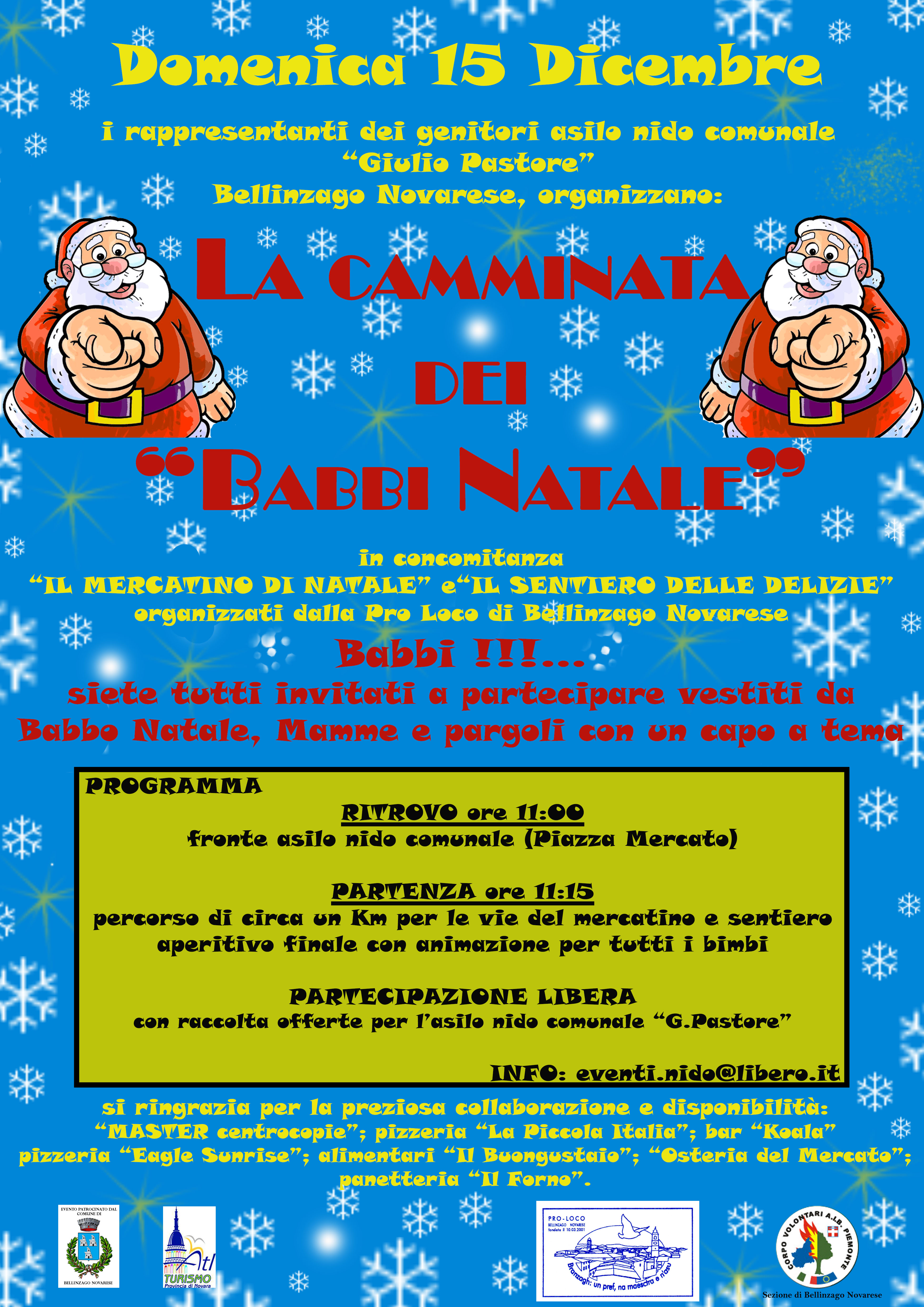 Unica raccomandazione per i babbi di indossare il vestito di Babbo Natale o un capo che lo identifichi, mamme e pargoli sempre con un capo o vestito a tema.