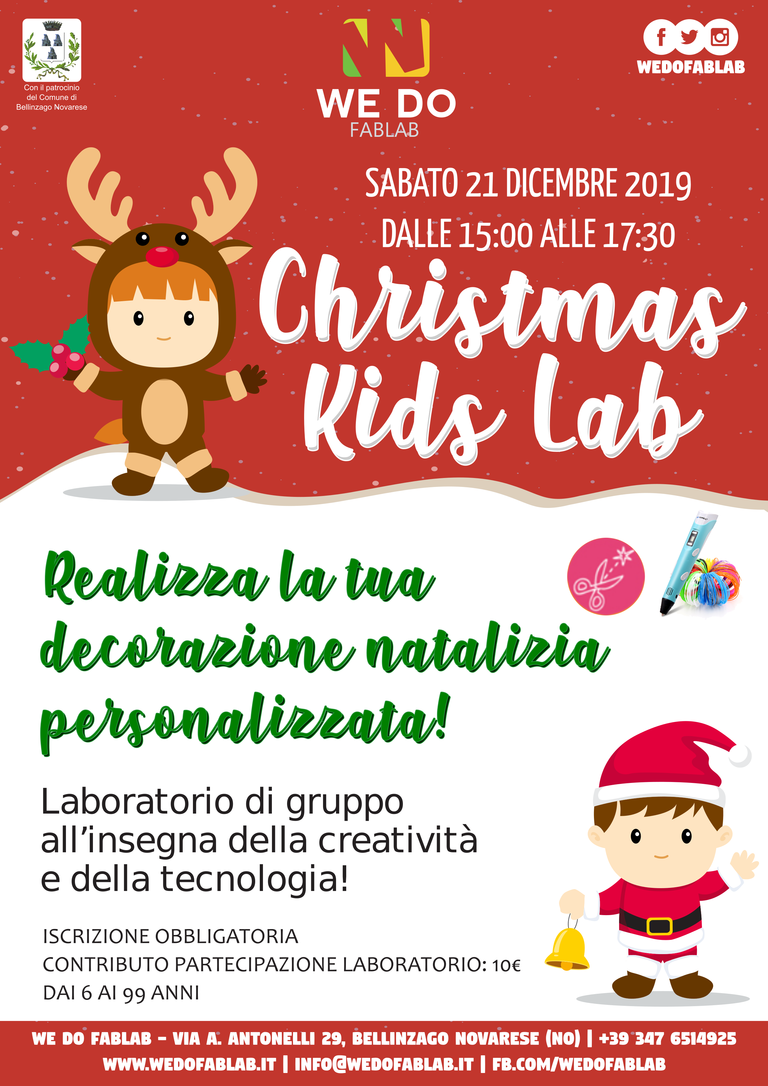Sabato 21 dicembre dalle 15,00 alle 17,30 presso la sede dell'Associazione We Do Fablab in via Antonelli,29 si terrà un laboratorio di gruppo per la realizzazione di decorazioni natalizie personalizzate. Iscrizione obbligatoria.