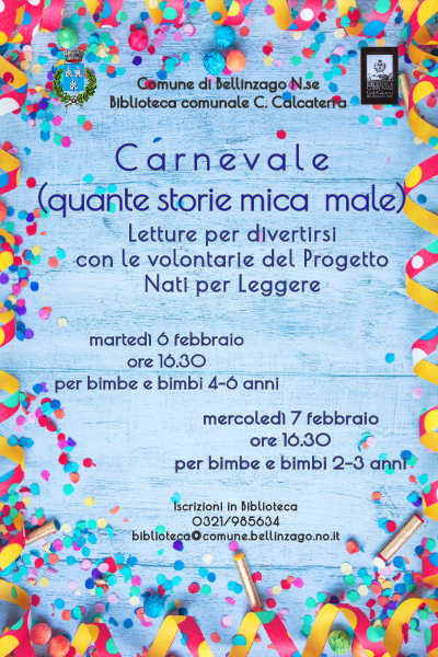 Storie per ridere e divertirsi vi attendono in Biblioteca grazie alle letture delle volontarie del Progetto Nati per Leggere: l'appuntamento è martedì 6 febbraio, alle 16.30, per bimbi e bimbe di 4-6 anni e mercoledì 7 febbraio sempre alle ore 16.30 per bimbi e bimbe di 2-3 anni.
