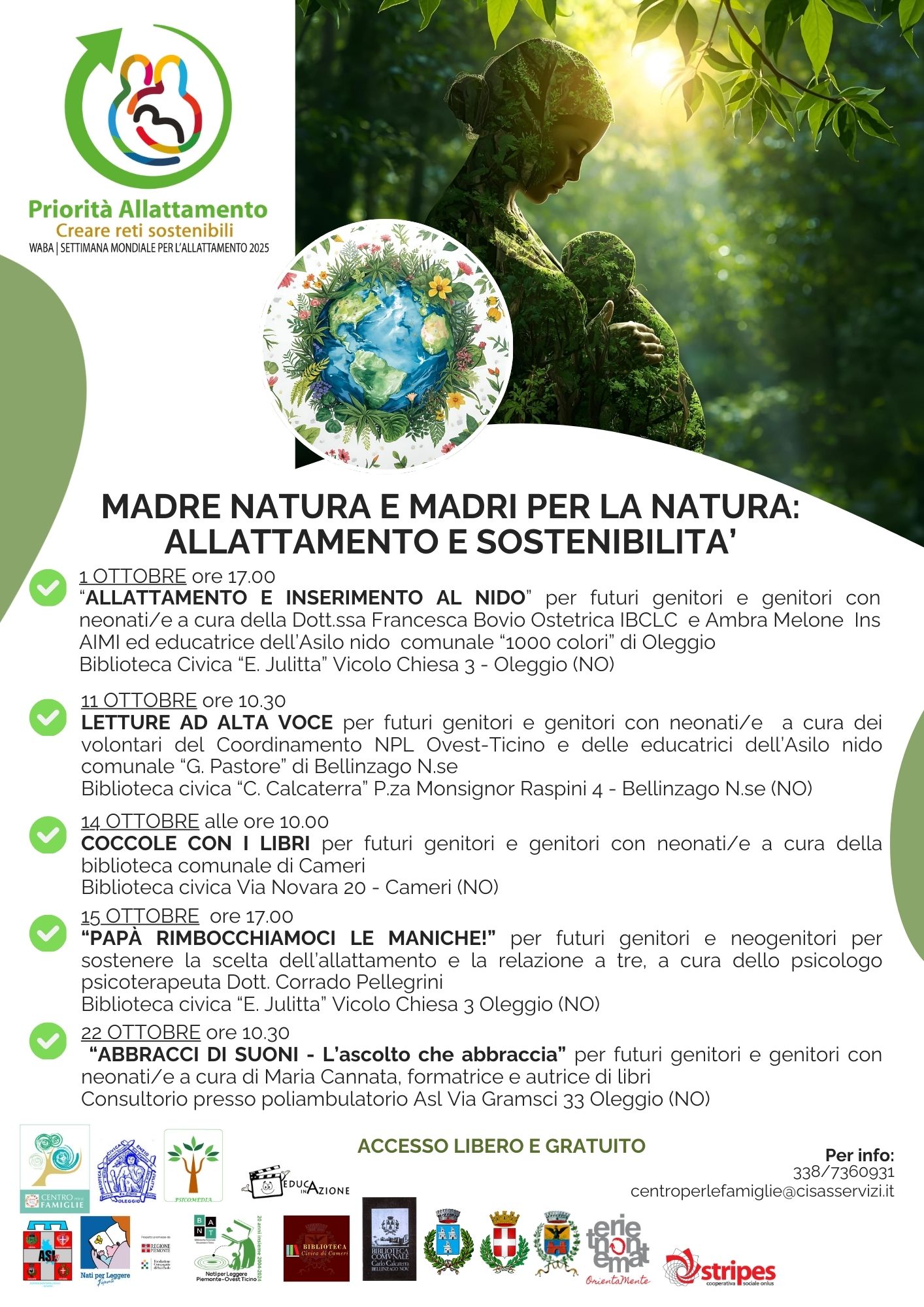 “Madre Natura e madri per la natura - allattamento e sostenibilità”, rientra nell’ambito del progetto “Priorità Allattamento - Creare reti sostenibili”, promosso a livello internazionale durante la Settimana Mondiale per l’Allattamento 2025 (dal 1° al 7 ottobre 2025), il cui tema è “Sostenere l’allattamento attraverso sistemi alimentari equi”.