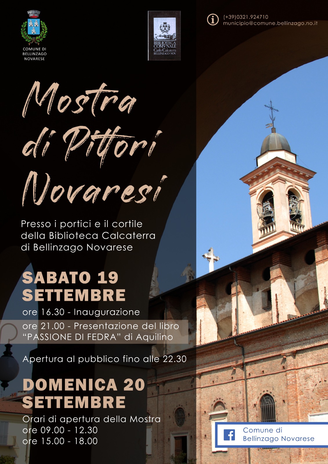 Sabato 19.09.2020 alle ore 16.30 presso i portici e il cortile della Biblioteca Comunale verrà inaugurata la "Mostra di pittori novaresi".