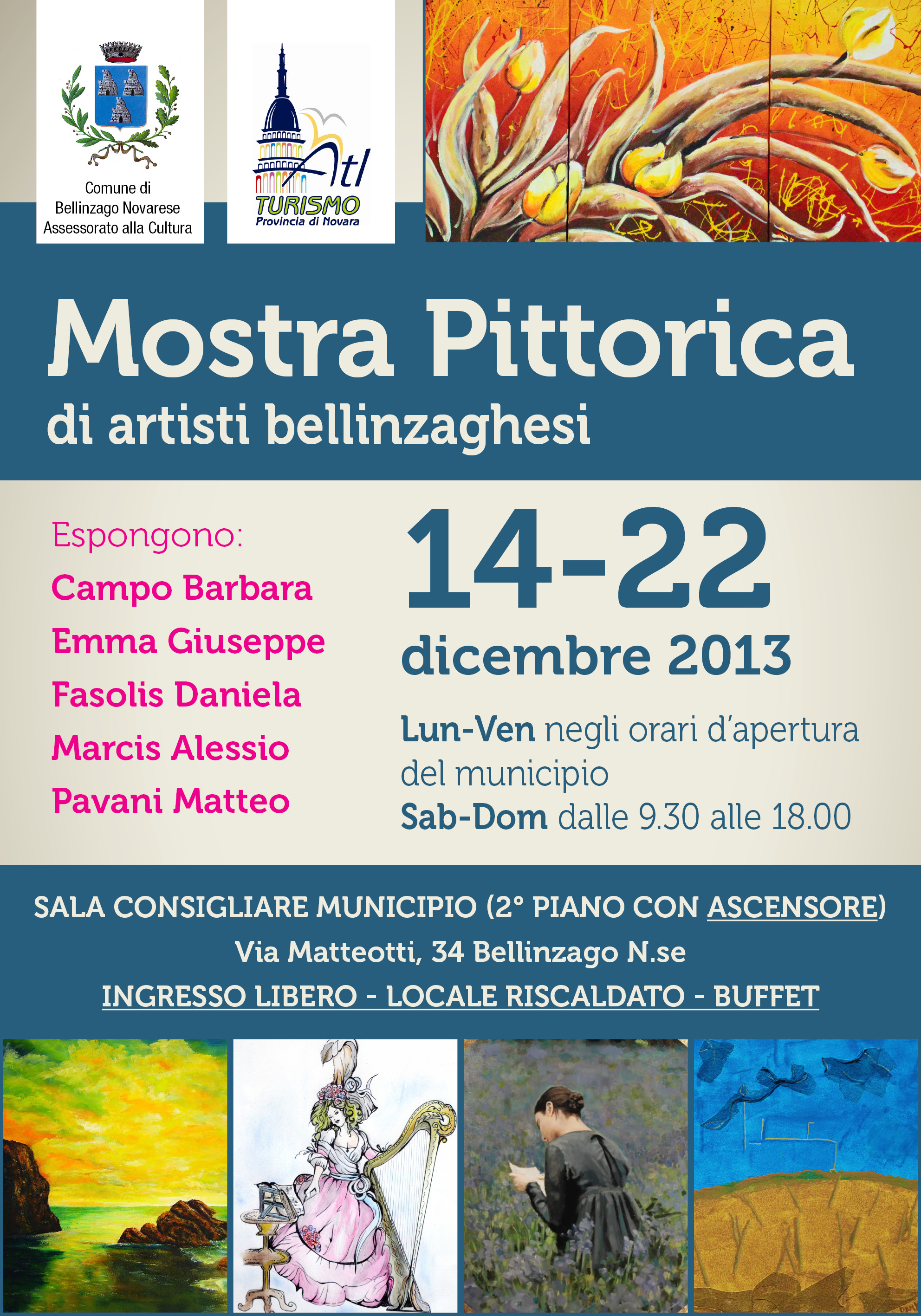 DA SABATO 14 DICEMBRE A DOMENICA 22 DICEMBRE 2013, PRESSO LA SALA CONSIGLIARE DEL MUNICIPIO DI VIA MATTEOTTI N. 34, ESPORRANNO LE PROPRIE OPERE PITTORICHE: