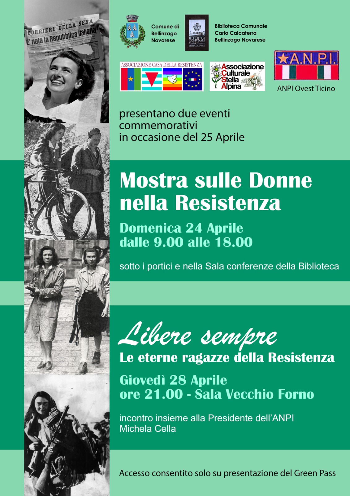 Serata informativa dal titolo "Libere sempre - Le eterne ragazze della Resistenza" - Giovedì 28 aprile, ore 21.00, presso la Sala Comunale "Don Antonio Vandoni" (Ex Vecchio Forno). Ingresso libero.