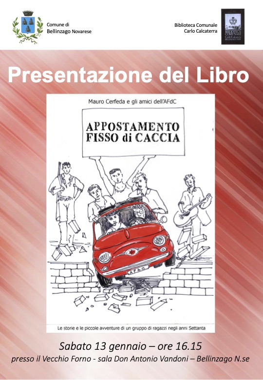 Sabato 13 gennaio, alle ore 16.15, presso il Vecchio Forno, vi attende un pomeriggio all'insegna dell'amicizia, narrata e vissuta, e dell'amarcord, per rivivere insieme i mitici anni Sessanta, grazie all'opera prima di alcuni bellinzaghesi, di nascita o d'adozione.