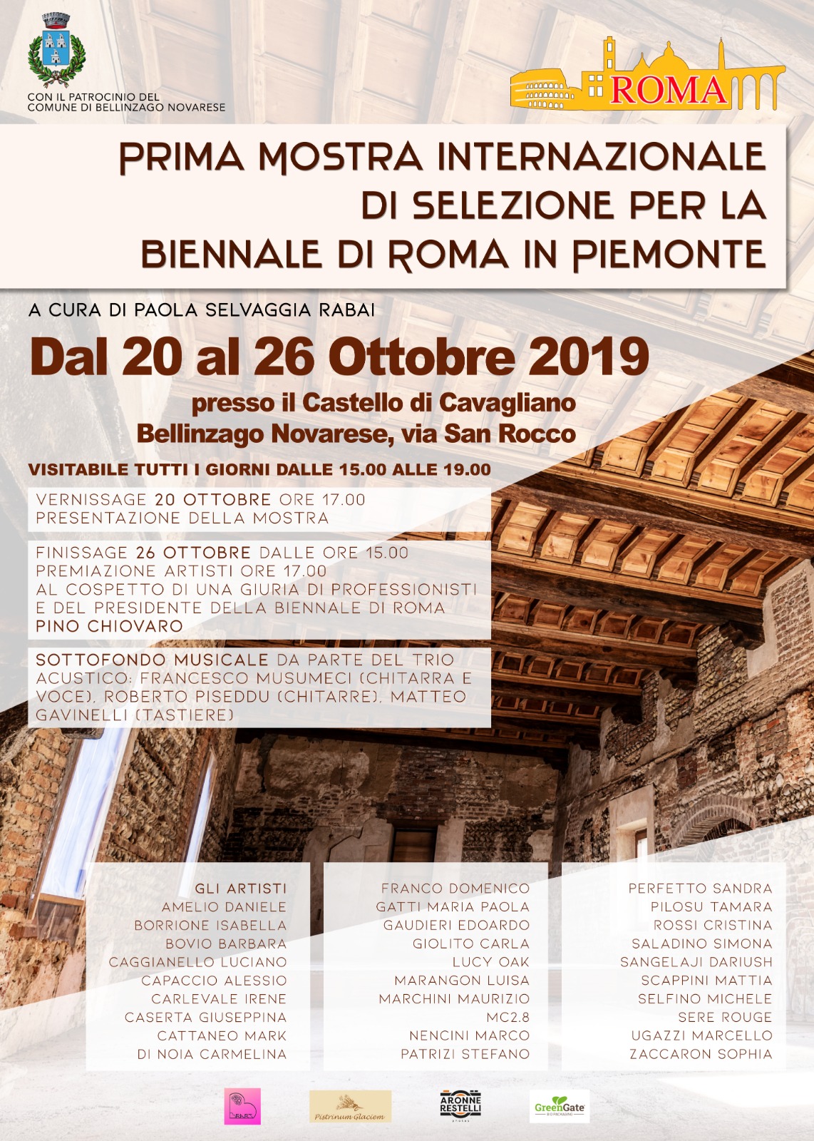 Dal 20 al 26 ottobre 2019 presso il Castello di Cavagliano, a Bellinzago Novarese, si terrà la Prima Mostra Internazionale di Selezione in Piemonte per la Biennale di Roma del 2020.