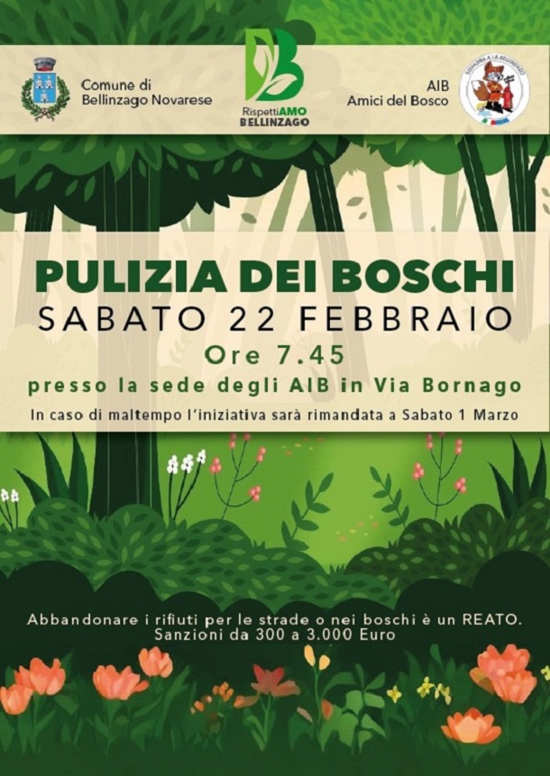 Sabato 22 febbraio tradizionale appuntamento di pulizia boschi, strade e aree di campagna in collaborazione con AIB - Squadra di Protezione Civile.
