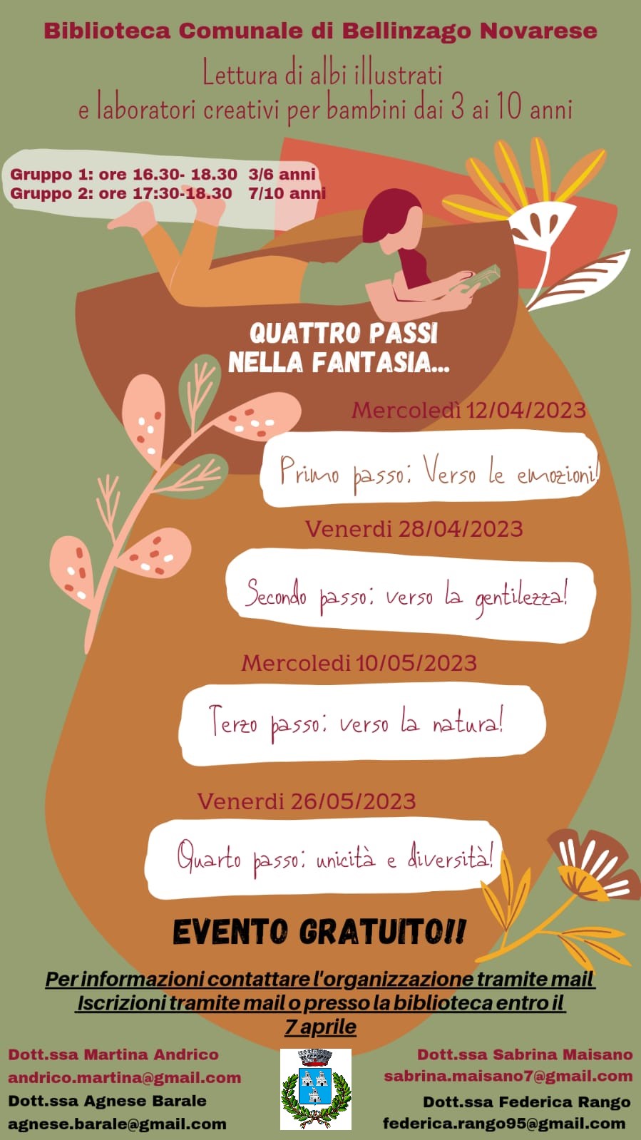 - dalle 16.30 alle 17.30 per bambini 3-6 anni