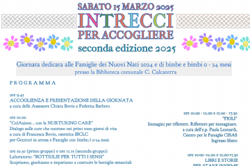 Sabato 15 marzo, dalle 9.45 alle 12.00 e dalle 15.00 alle 17.30, si terrà presso la Biblioteca, per il secondo anno, l'iniziativa "Intrecci per Accogliere", una giornata dedicata ai Genitori...