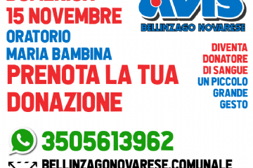 Domenica 15/11 abbiamo l'ultima raccolta di sangue del 2020 a Bellinzago.