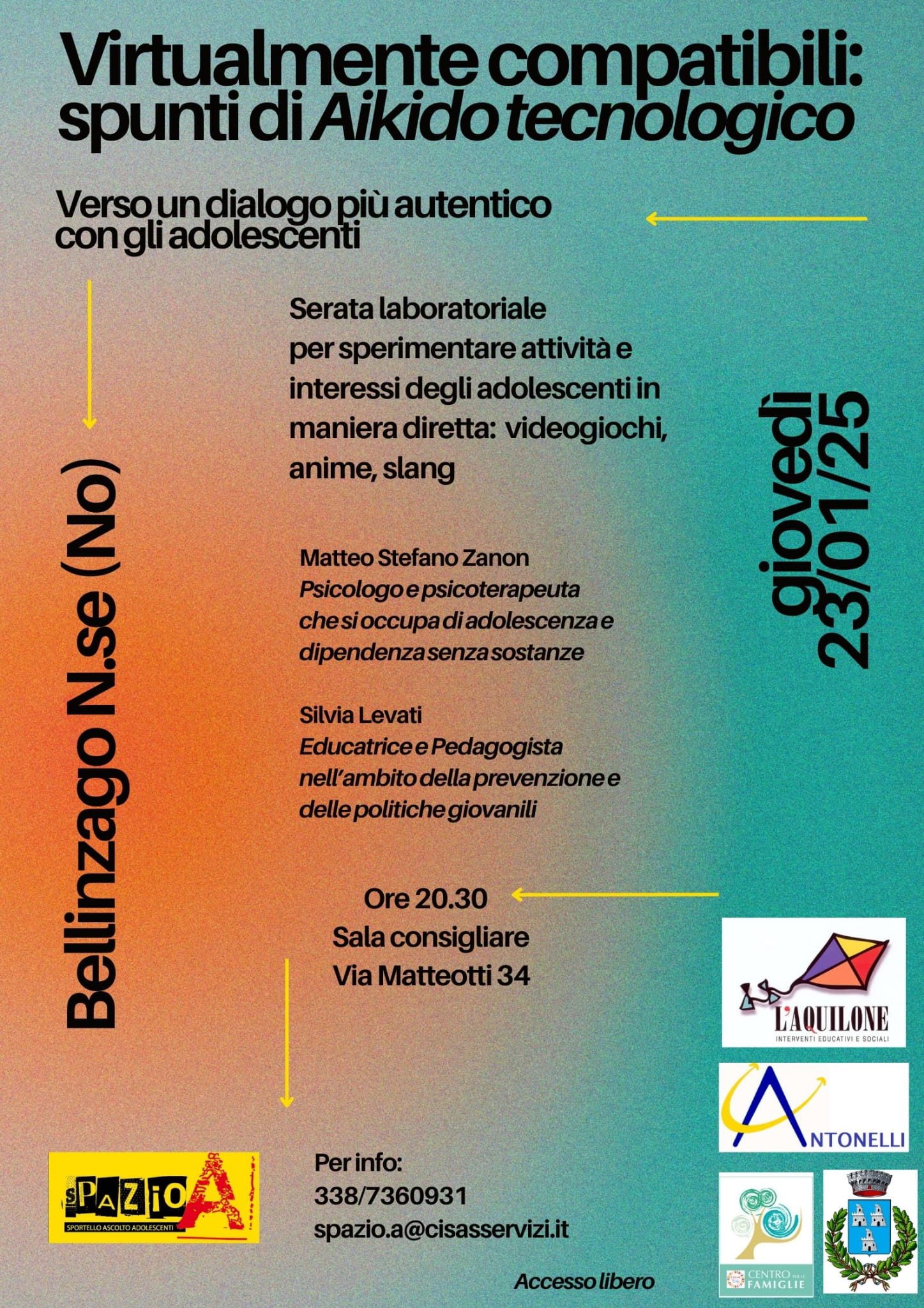 Una serata rivolta a genitori, educatori, famiglie, a giovani e a meno giovani. Un momento laboratoriale per conoscere e sperimentare in maniera diretta attività e interessi degli adolescenti. Un'opportunità, offerta dalla rete del territorio in cui il Comune è inserito, per farsi vicini ai ragazzi e alle ragazze e allargare gli orizzonti.