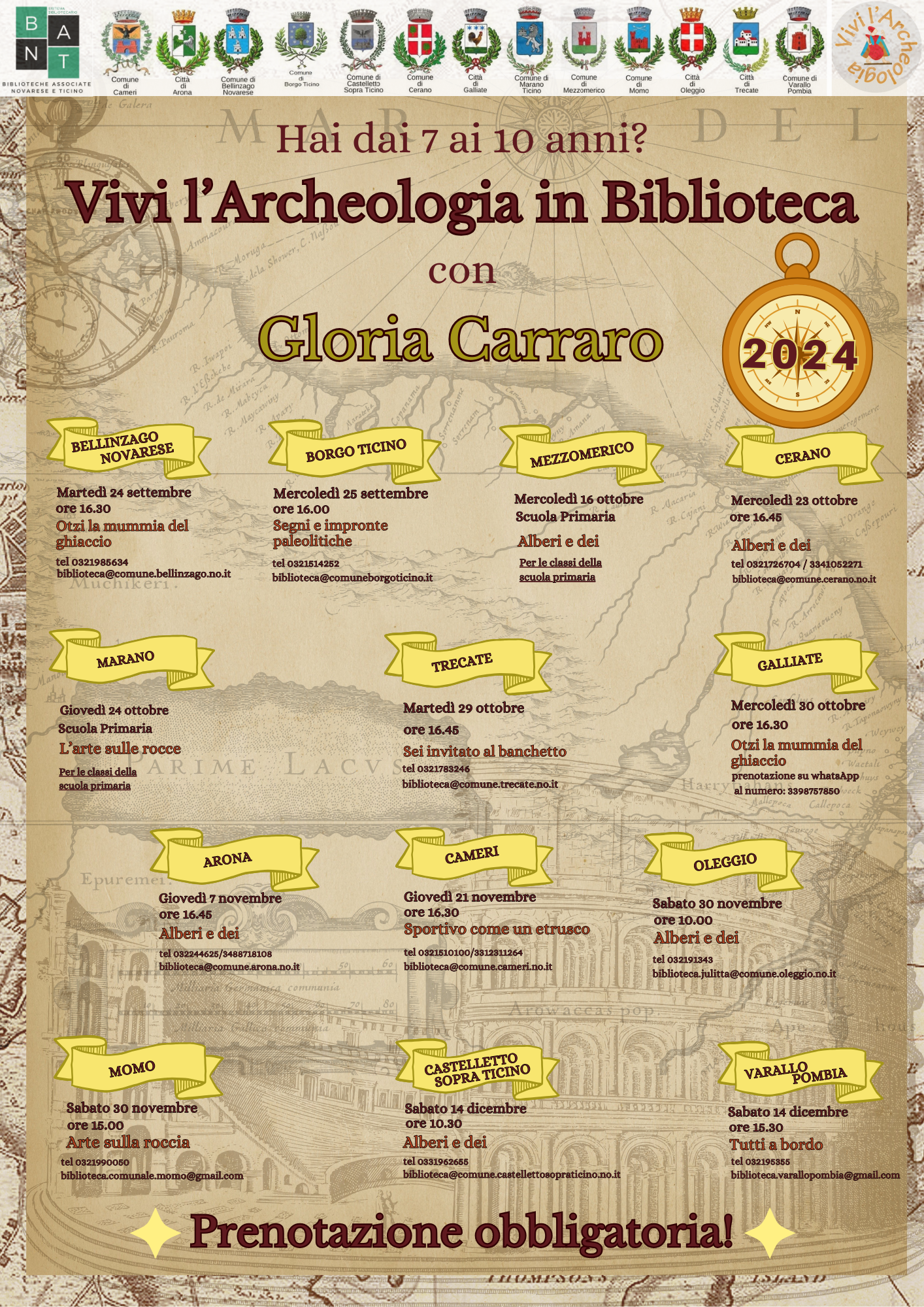A partire dal 24 settembre le biblioteche del sistema BANT ospiteranno i laboratori a cura di Gloria Carraro, a tema archeologia, che si rivolgono alle bambine e ai bambini dai 7 agli 11 anni di età.