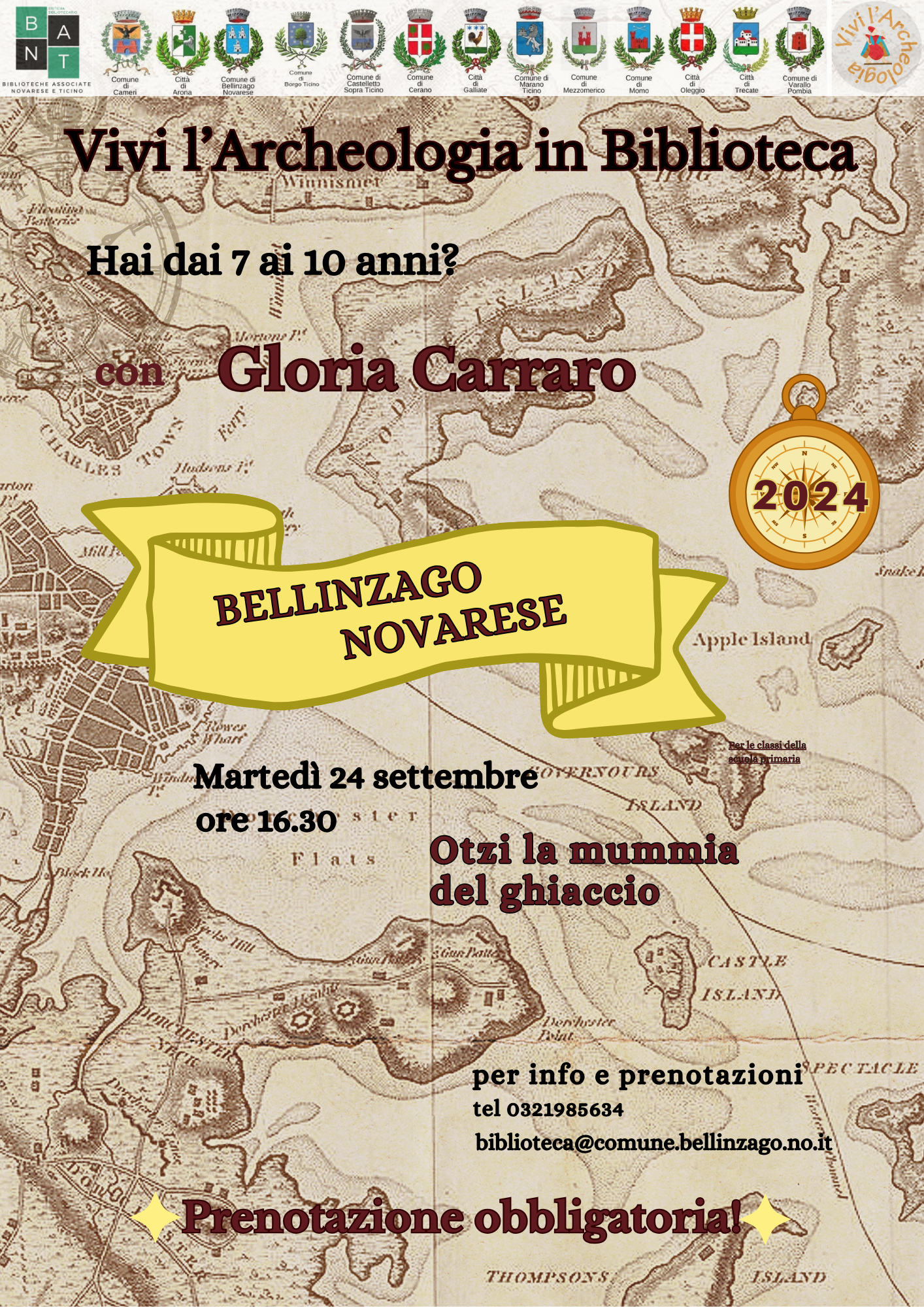 Primo appuntamento martedì 24 settembre alle 16.30 a Bellinzago Novarese, presso la Biblioteca, con il laboratorio “Otzi, la mummia del ghiacciaio”.