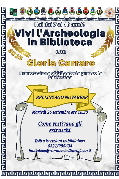 Presso la Biblioteca C. Calcaterra di Bellinzago il laboratorio «Come vestivano gli Etruschi» è previsto per martedì 26 settembre alle ore 16.30.